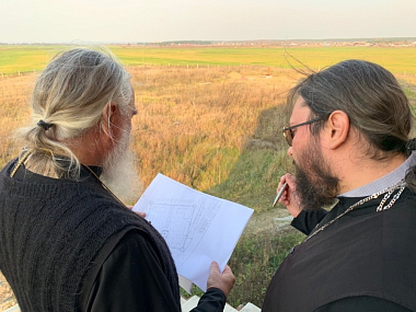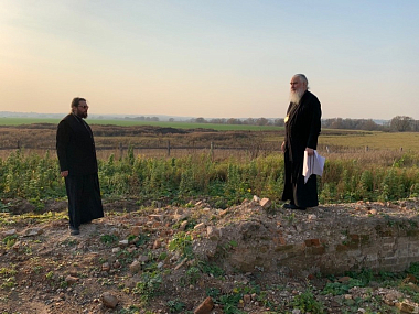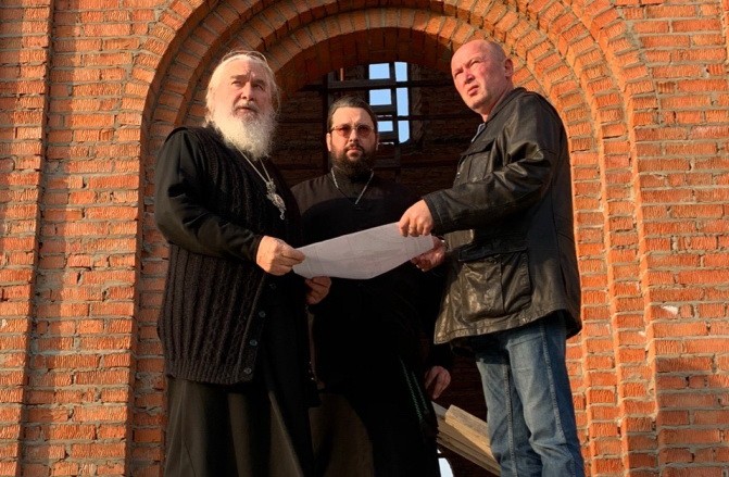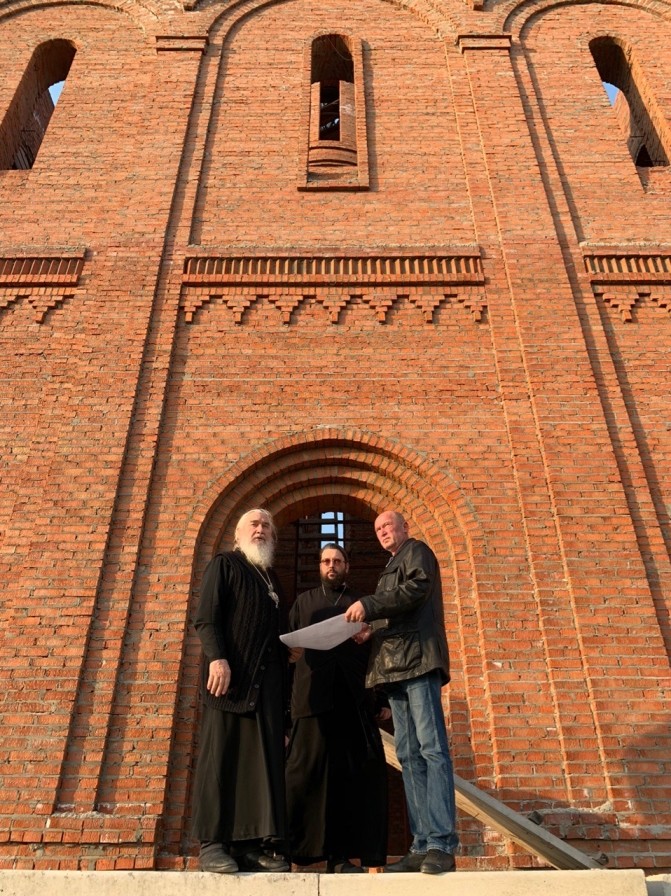 Владыка ознакомился с ходом восстановительных работ, пообщался со строителями и настоятелем подворья иеромонахом Саввой (Петрушко).