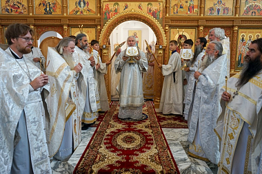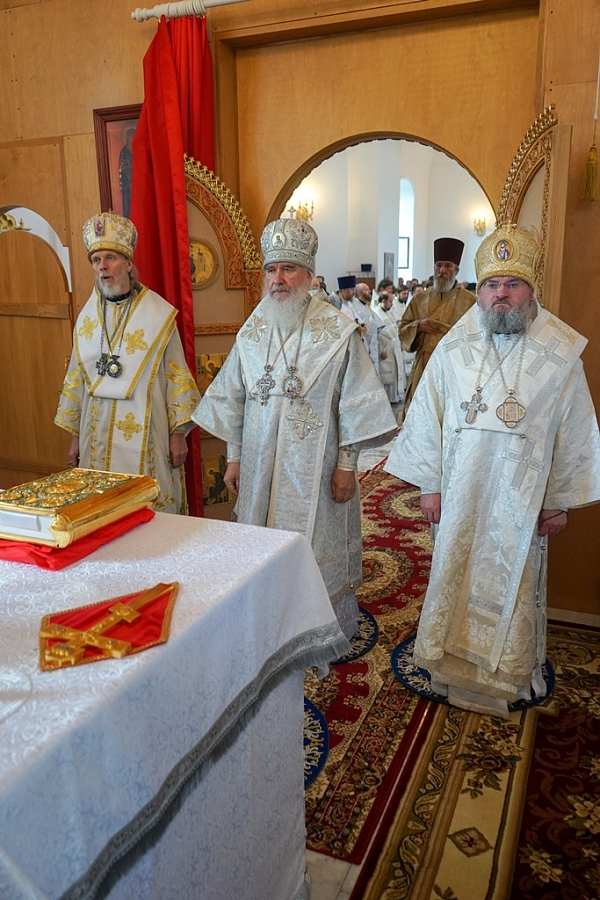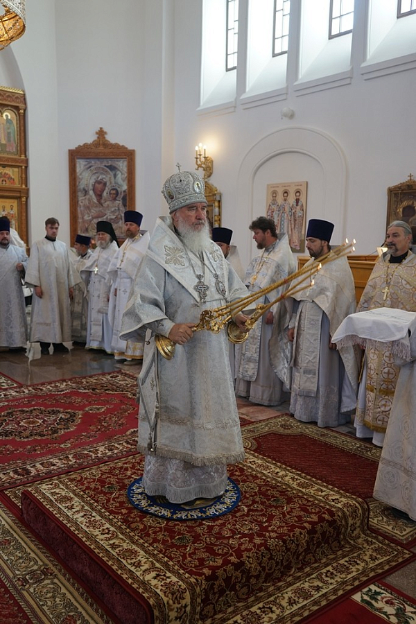 За богослужением архипастырям Калужской митрополии сослужили: благочинный г. Калуги архимандрит Донат (Петенков), наместник Свято-Успенской Тихоновой пустыни архимандрит Тихон (Завьялов), секретарь Калужской епархии игумен Мефодий (Пронькин), отцы благочинные, настоятели и клирики приходов и монастырей Калужской, Козельской и Песоченской епархий.