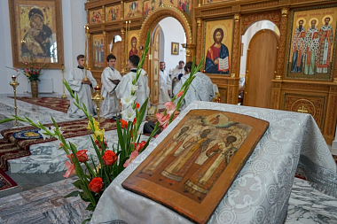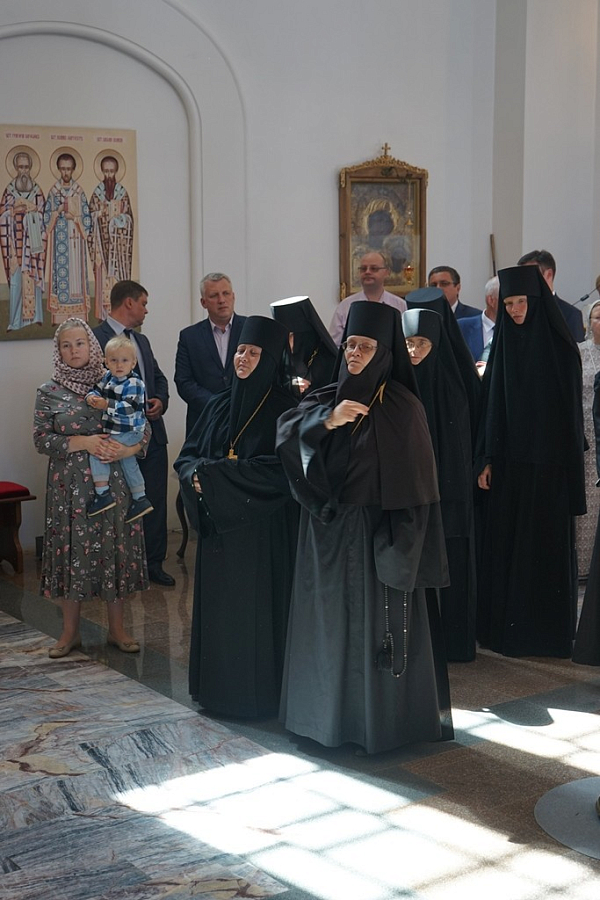 За богослужением молились: настоятельница Свято-Никольского Черноостровского женского монастыря г. Малоярославца игумения Николая (Ильина), настоятельница Спасо-Воротынского женского монастыря игумения Анастасия (Мордмилович), настоятельница Свято-Рождественской Девичьей пустыни игумения Феофила (Лепешинская), настоятельница женского монастыря в честь Калужской иконы Божией Матери г. Калуги игумения Параскева (Ляхова), многочисленные гости и паломники.