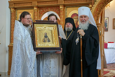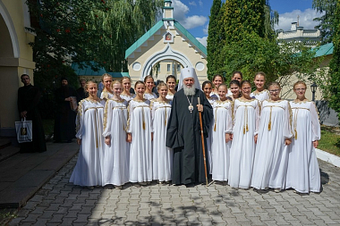 За праздничной трапезой выступили воспитанницы детского приюта «Отрада» при Свято-Никольском Черноостровском монастыре. Девочки поздравили Высокопреосвященнейшего владыку с торжественным событием.