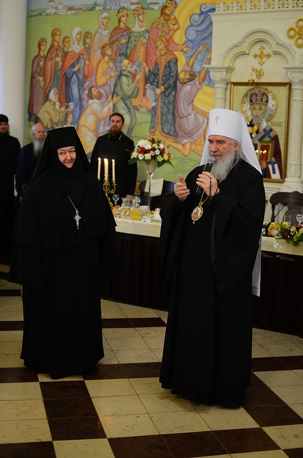 Далее участники крестного хода были приглашены на праздничную трапезу в Большую трапезную обители, после которой воспитанницы монастырского детского православного приюта «Отрада» представили спектакль-концерт об Отечественной войне 1812 года. Вспоминались герои Отечественной войны, среди которых и Надежда Дурова – ровесница девочек, участвовавших в представлении. Спектакль заставил задуматься о долге перед Отчизной, живой и глубокой вере русского народа, духовных истоках героизма русской армии.
