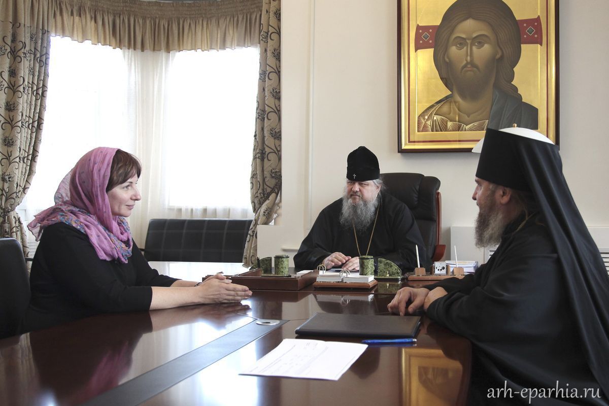 17 сентября владыка провел рабочую встречу с заместителем губернатора Архангельской области, руководителем представительства региона при Правительстве России Еленой Кутуковой.