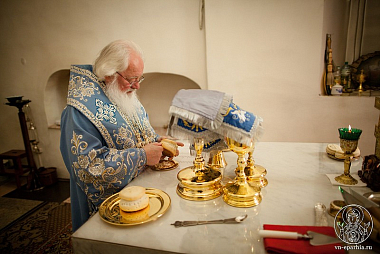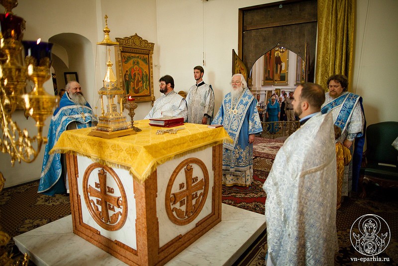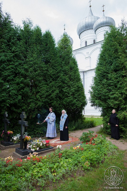 Его Высокопреосвященству сослужили духовник Варлаамо-Хутынского монастыря архимандрит Макарий (Шамсутдинов), клирик Софийского собора иерей Михаил Ершов.