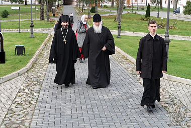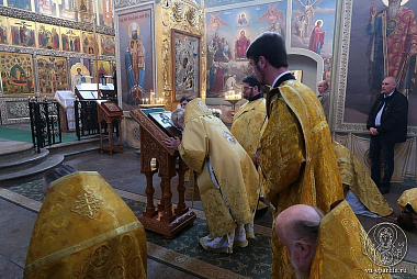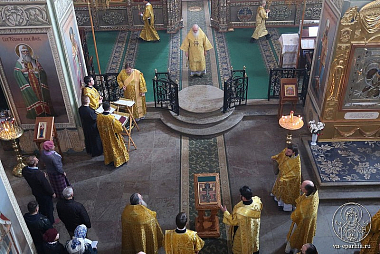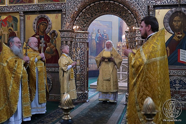 Его Высокопреосвященству сослужили наместник Иверского монастыря иеромонах Антоний (Битьмаев), насельники монастыря иеромонахи Борис (Григорьев), Евсевий (Голубев), Пантелеимон (Шахтахтинский) и клирик Софийского собора иерей Николай Полозов.