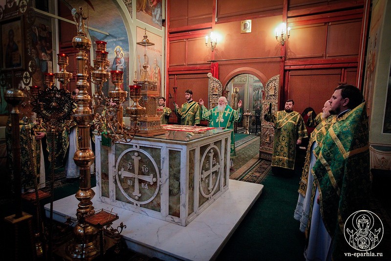 Его Высокопреосвященству сослужили наместник монастыря иеромонах Антоний (Битьмаев), насельники монастыря иеромонахи Борис (Григорьев), Евсевий (Голубев), Серафим (Игнатьев), Пантелеимон (Шахтахтинский) и клирик Софийского собора иерей Николай Полозов.