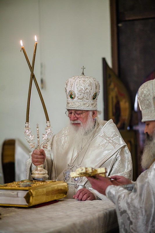 Его Высокопреосвященству сослужили насельник Варлаамо-Хутынского монастыря архимандрит Макарий (Шамсутдинов), наместник Спасо-Преображенской Антоние-Леохновской пустыни архимандрит Митрофан (Письменский), и.о. наместника Иверского монастыря иеромонах Антоний (Битьмаев), и.о. благочинного Свято-Юрьева монастыря иеромонах Григорий (Побожин), штатный клирик Софийского собора иерей Николай Полозов, штатный священник церкви св. ап. Филиппа иерей Павел Демочкин, клирик Санкт-Петербургской митрополии иерей Герман Ранне.