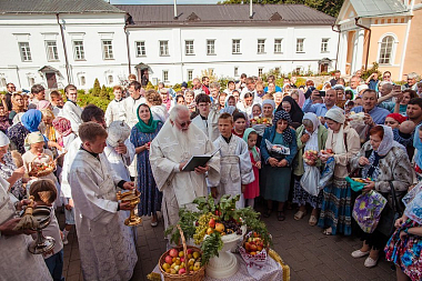 По окончании богослужения владыка поздравил верующих с престольным праздником обители, отметив, что сегодняшний день как бы подводит первую черту под нашими трудами в течение лета, ведь сегодня освящаются фрукты и овощи, которые люди своим трудом взращивали в садах и огородах. «Божие благословение пребудет не только на этих плодах, но и на ваших семьях, и домах. Господь да сопутствует вам в ваших трудах! Дай Бог нам всем дожить до следующего праздника Преображения», – пожелал собравшимся архипастырь.
