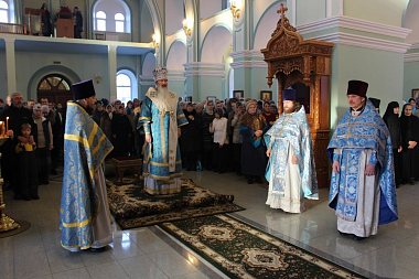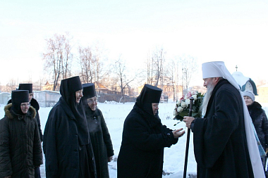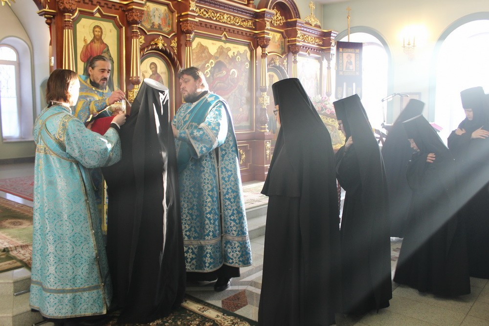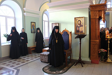 За богослужением молились среди прочих настоятельница обители игумения Феодосия (Дьячкова) и насельницы монастыря.