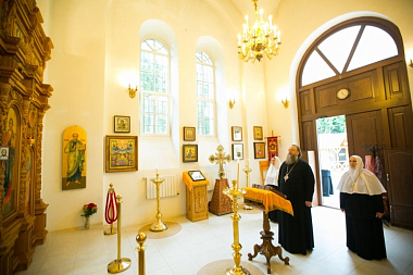 В поездке Его Высокопреосвященство сопровождала казначей собора монахиня Даниила (Семеновская).