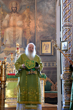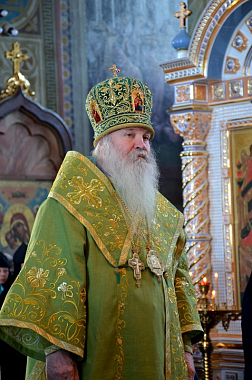 Перед началом богослужения глава Липецкой митрополии поклонился честным мощам святителя Тихона, епископа Воронежского, Задонского чудотворца.