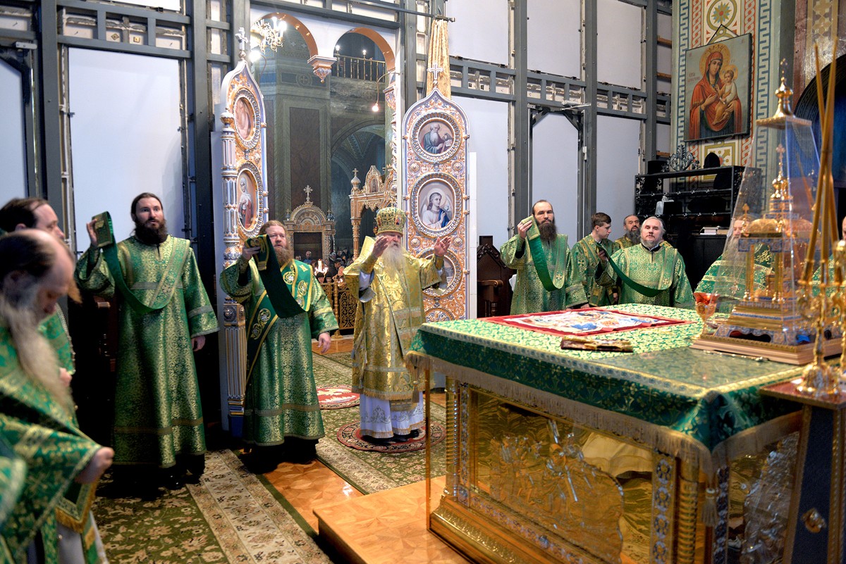 Перед началом Богослужения глава Липецкой митрополии поклонился честным мощам святителя Тихона, епископа Воронежского и Задонского чудотворца.