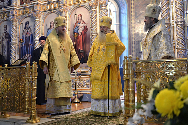 Архиерейское богослужение совершалось при большом стечении верующих, многие из которых прибыли в обитель, чтобы в праздник почитаемого святого и день рождения правящего архиерея разделить с Владыкой радость молитвенного и евхаристического общения.