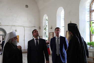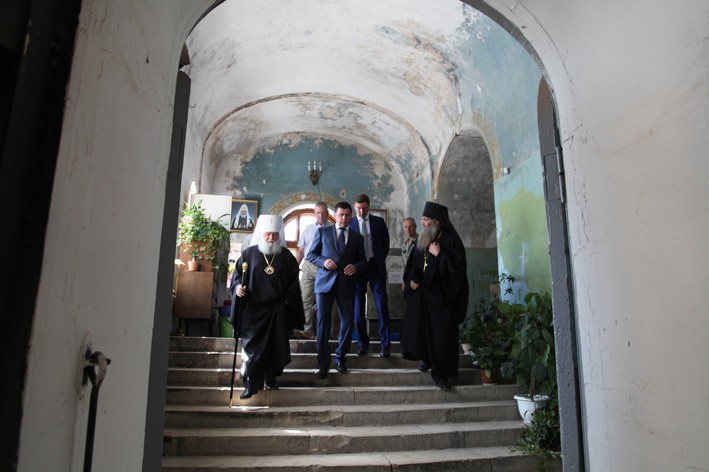 О проделанных реставрационных работах гостям рассказал настоятель обители игумен Никодим (Федоров).