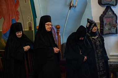 За Литургией молились настоятельница Благовещенского женского монастыря схиигумения Амвросия (Усталова) и монахини обители.
