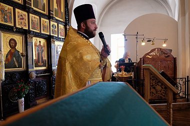 Проповедь по запричастном стихе иерея Кирилла Алексеева была посвящена святоотеческому толкованию евангельской притчи о немилосердном должнике.