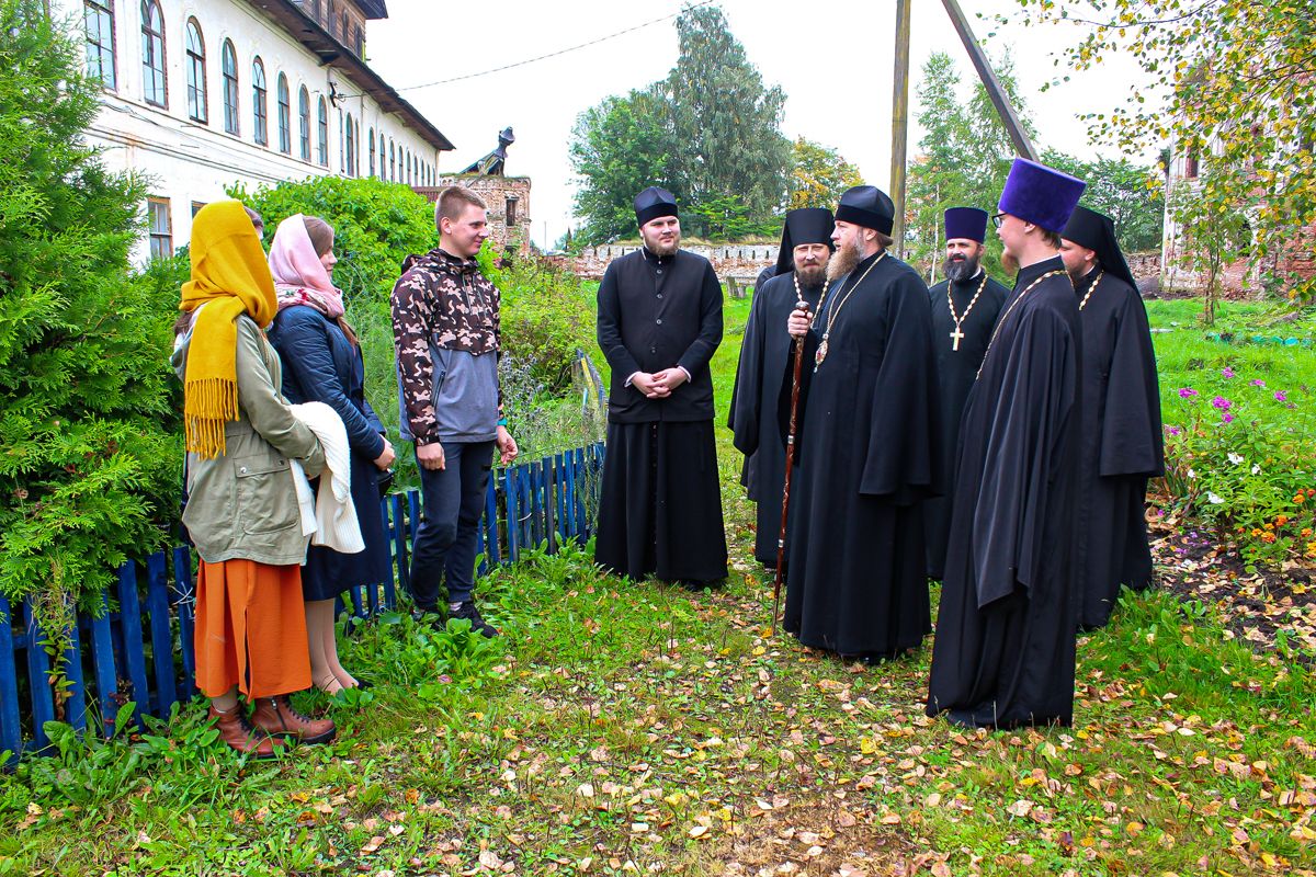 Его Высокопреосвященному сослужили: настоятель Заоникиевой пустыни игумен Николай (Ананьев); благочинный монастырей игумен Иоасаф (Вишняков); секретарь Епархиального управления иерей Роман Попов; руководитель молодежного отдела иерей Михаил Максимов; клирики Вологодской епархии.