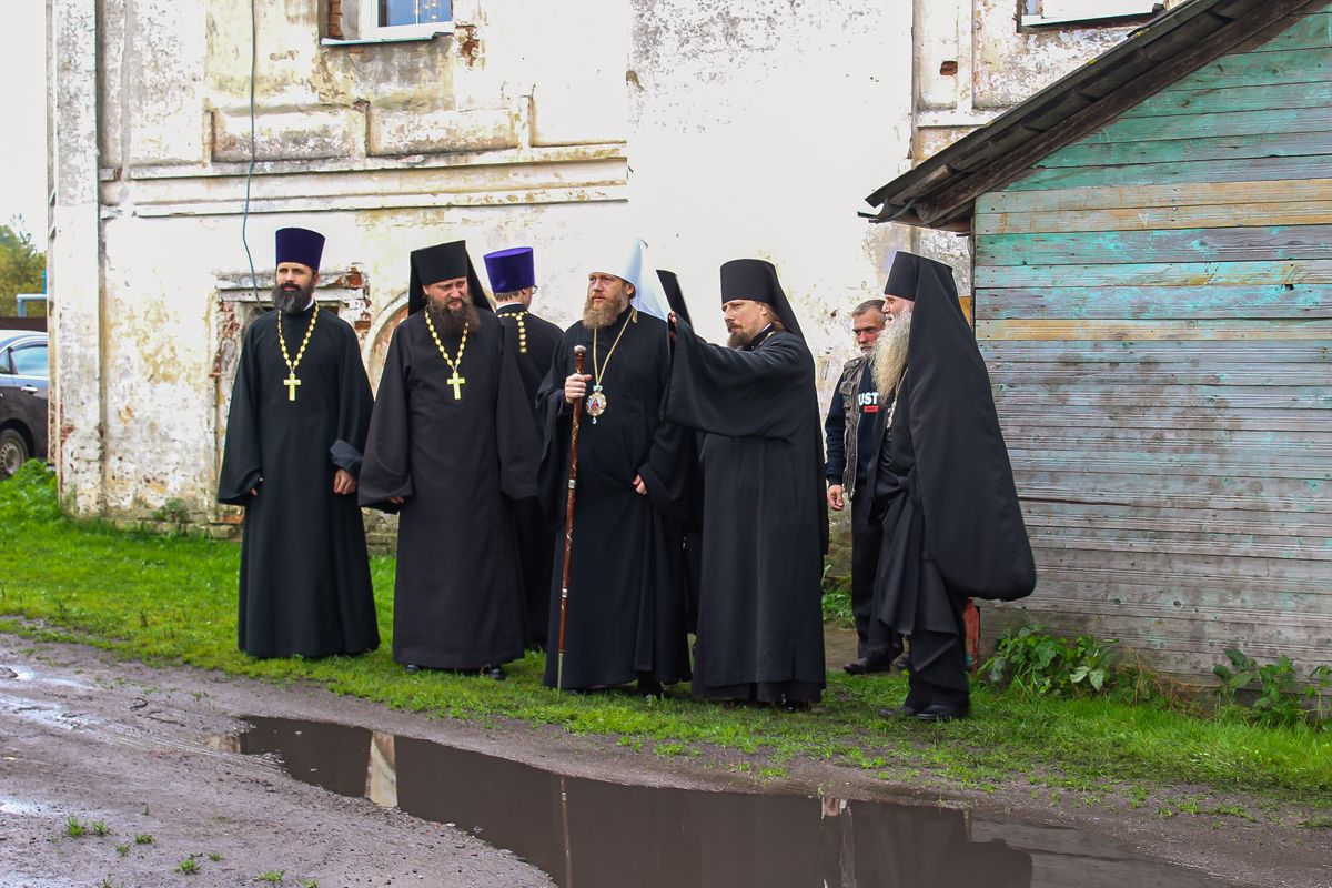 Далее владыка в сопровождении игумена монастыря осмотрел исторический корпус братских келий, посетил хозяйственный двор и побеседовал с прихожанами пустыни.