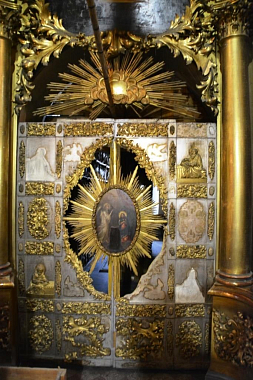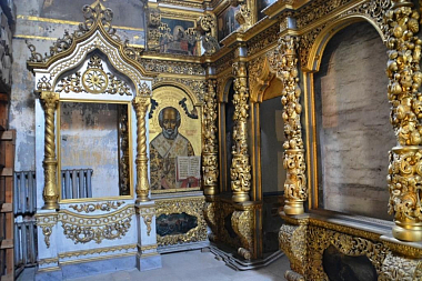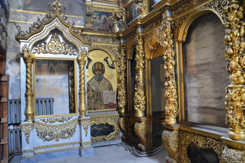 Сени и своды в алтаре Спасо-Преображенского собора были украшены в 1756 году живописными изображениями. По западной стене церкви под сводами были построены деревянные хоры, которые в старину составляли принадлежность соборных церквей. Предалтарный иконостас – резной золоченый. Возведен в 1697 году, через год после постройки храма, по заказу архиепископа Александра. Иконостас поражал пышностью своего орнаментного убранства.