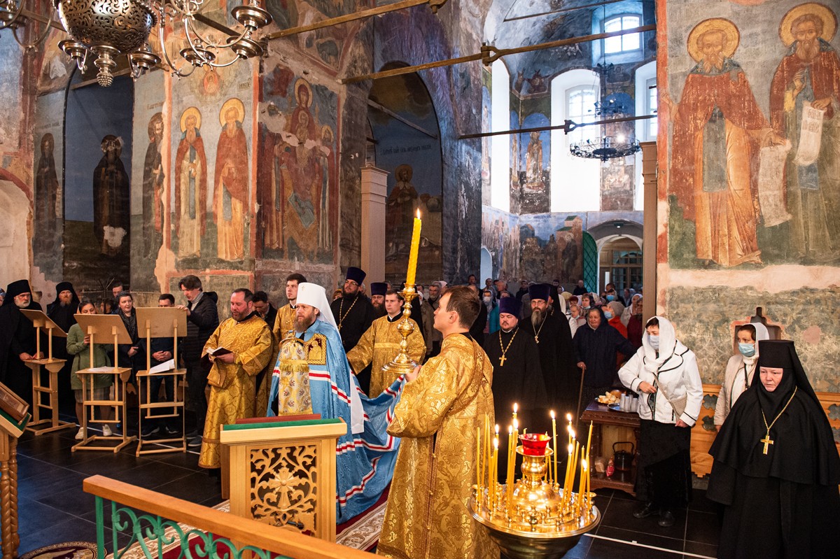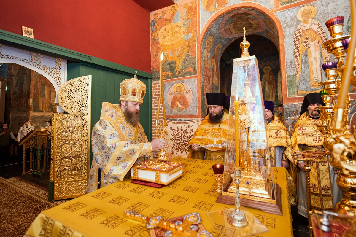 13 сентября 2020 года, в праздник Положения честного Пояса Пресвятой Богородицы, день перенесения мощей благоверных князя Петра и княгини Февронии, Муромских чудотворцев, митрополит Вологодский и Кирилловский Савва совершил Божественную литургию в Успенском соборе Кирилло-Белозерского мужского монастыря.