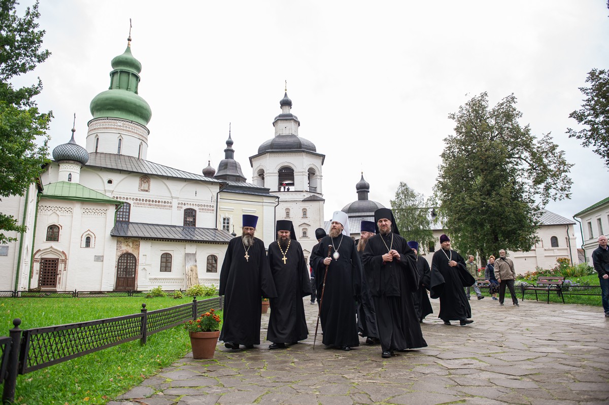 Его Высокопреосвященству сослужили наместник монастыря игумен Анастасий (Додарчук), благочинный монастырей игумен Иоасаф (Вишняков), благочинный Кирилловского округа протоиерей Владимир Колосов, братия обители в священном сане и клирики Вологодской епархии.