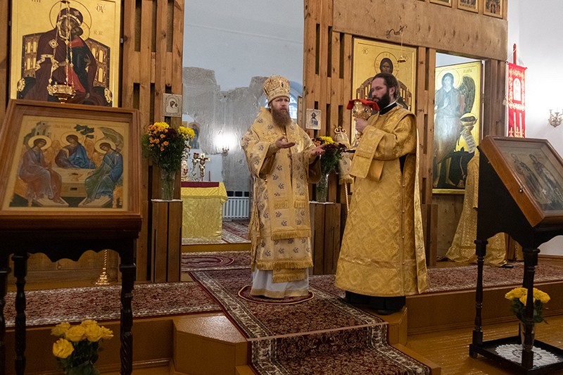 По запричастном стихе проповедь, посвященную истолкованию евангельского чтения Недели 25-й по Пятидесятнице, произнес иеромонах Агапит.
