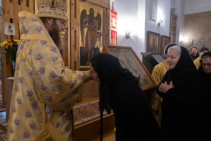 По окончании богослужения от лица прихожан со словами благодарности к Его Высокопреосвященству обратилась настоятельница монастыря игумения Лариса (Лобанова).