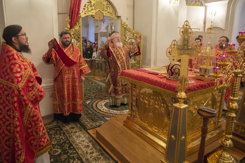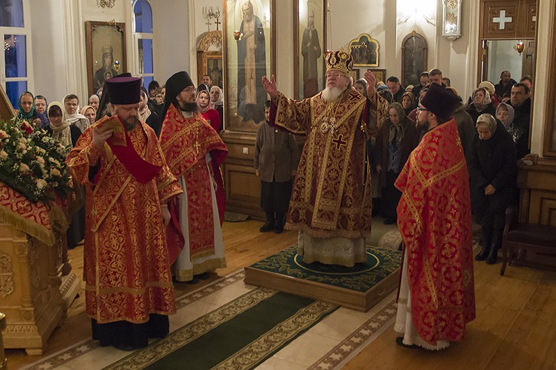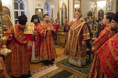 После сугубой ектении митрополит Сергий вознес молитву о мире и прекращении междоусобной брани в Украине.