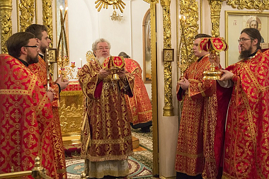 В совершении Божественной литургии владыке Сергию сослужили благочинный монастырского церковного округа, настоятель Свято-Успенского Дивногорского мужского епархиального монастыря иеромонах Алексий (Сукачев) и клирики обители священник Дионисий Агапов и иеромонах Феодосий (Дьяченко).