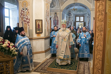 В завершение богослужения митрополит Сергий поздравил всех присутствующих с престольным праздником и обратился к ним с архипастырским словом.