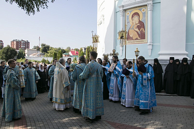 После отпуста Литургии был совершен молебен Пресвятой Богородице и крестный ход вокруг соборного храма.