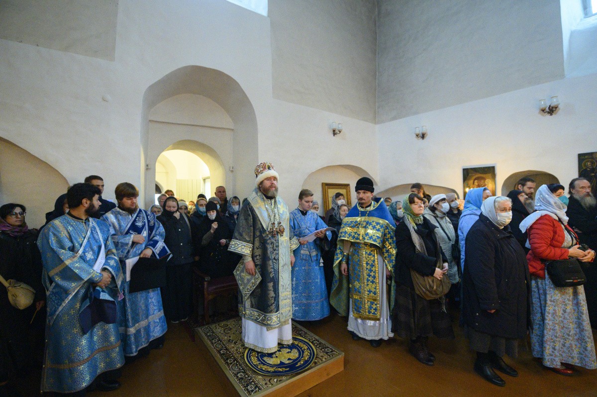 14 октября 2020 года, в праздник Покрова Пресвятой Владычицы нашей Богородицы и Приснодевы Марии, митрополит Псковский и Порховский Тихон совершил Божественную литургию древнерусским чином в храме святителя Николая Чудотворца (Николы Явленного от Торга) – подворье Успенского Псково-Печерского мужского монастыря в Пскове.