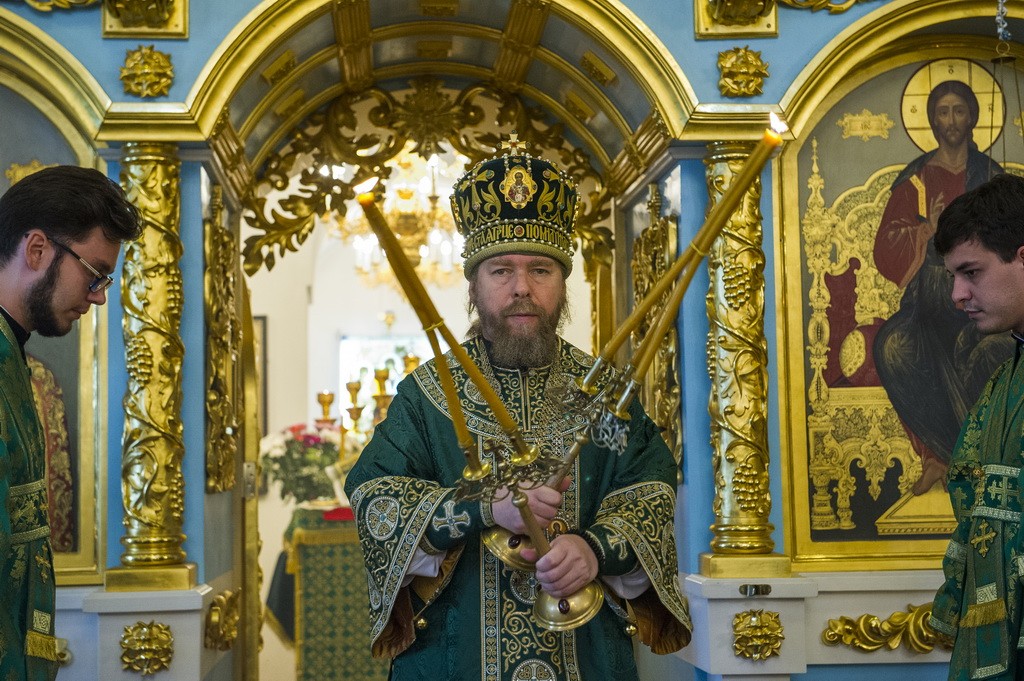 Его Выскопреосвященству сослужили наместник обители игумен Савва (Комаров) с братией, благочинный Псковского округа митрополии протоиерей Георгий Быков, настоятель храма святителя Николая в Любятове г. Пскова протоиерей Владимир Попов, клирики и гости епархии в священном сане.
