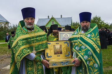 По окончании Литургии митрополит Тихон возглавил крестный ход вокруг обители.