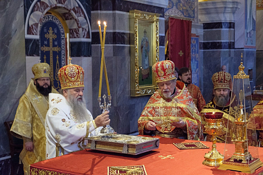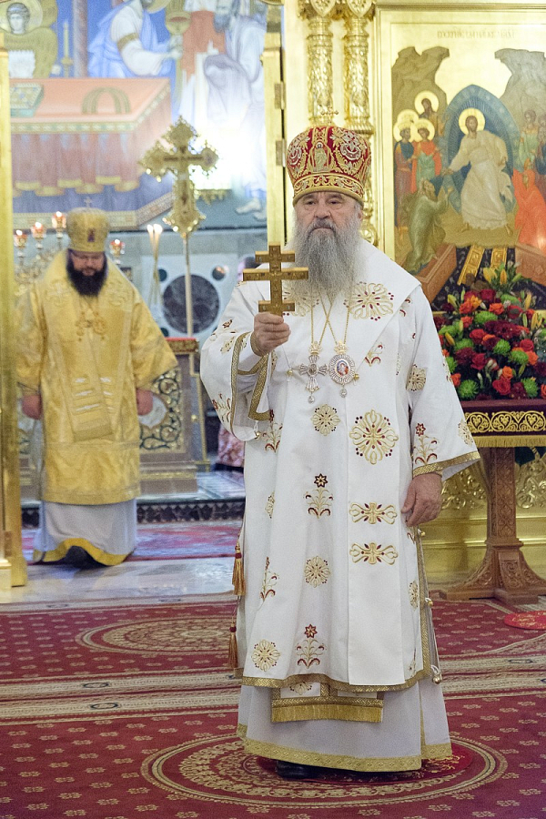 Матушка София поблагодарила митрополита Варсонофия и преподнесла в дар Его Высокопреосвященству крест и панагию. «Мы молились больше пятнадцати лет, чтобы храм этот был восстановлен, – сказала настоятельница. – Храм пережил пожар. То, что мы видим сейчас, это молитва и труд многих людей, в том числе наших прихожан».