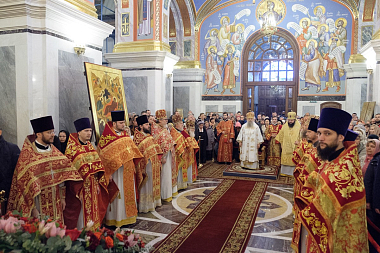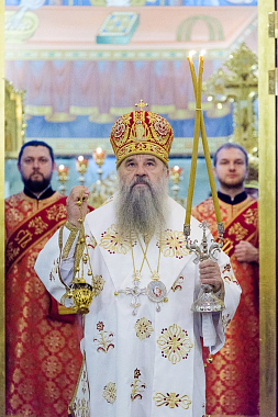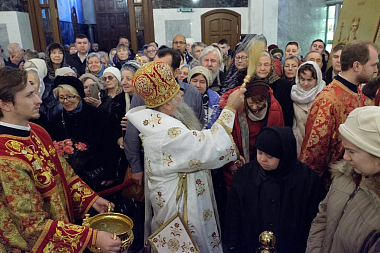 В дар общине храма митрополит Варсонофий передал Евангелие. Владыка поздравил настоятельницу монастыря игумению Софию (Силину) с днем рождения и преподнес ей Владимирскую икону Божией Матери.