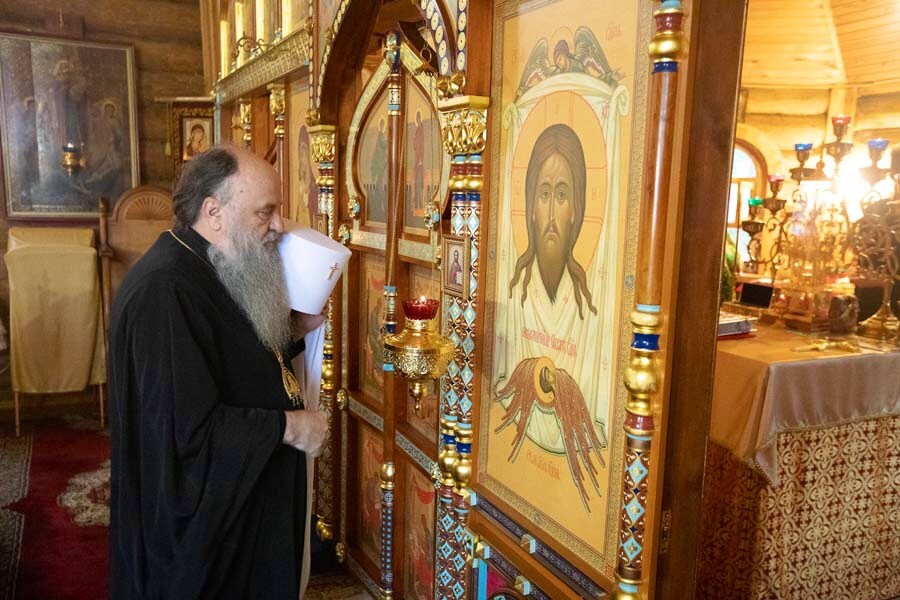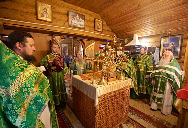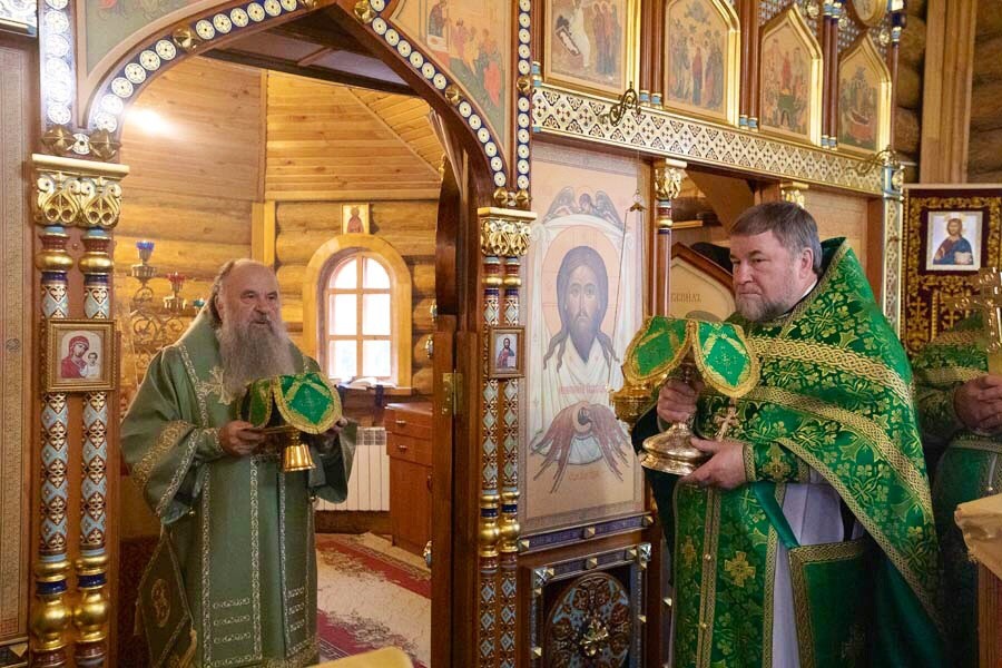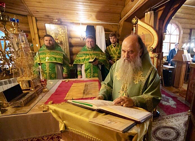 Его Высокопреосвященству сослужили протоиерей Сергий Куксевич, наместник обители игумен Мелетий (Кисняшкин).