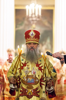 Среди молящихся присутствовали глава Центрального района Андрей Хлудков, начальник городского отдела по связям с религиозными объединениями Владимир Иванов, настоятельницы женских монастырей митрополии.