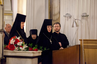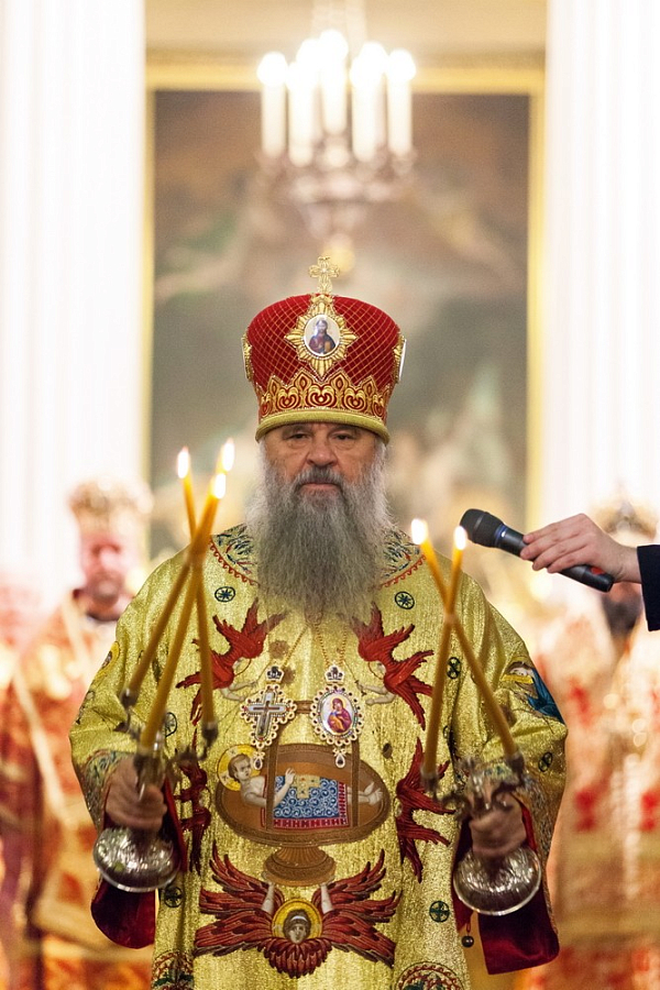По завершении молебна митрополит Варсонофий зачитал поздравление Святейшего Патриарха Московского и всея Руси Кирилла владыке Назарию по случаю дня тезоименитства и 65-летия со дня рождения: