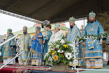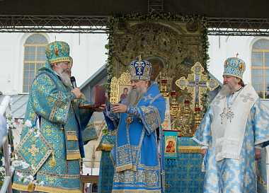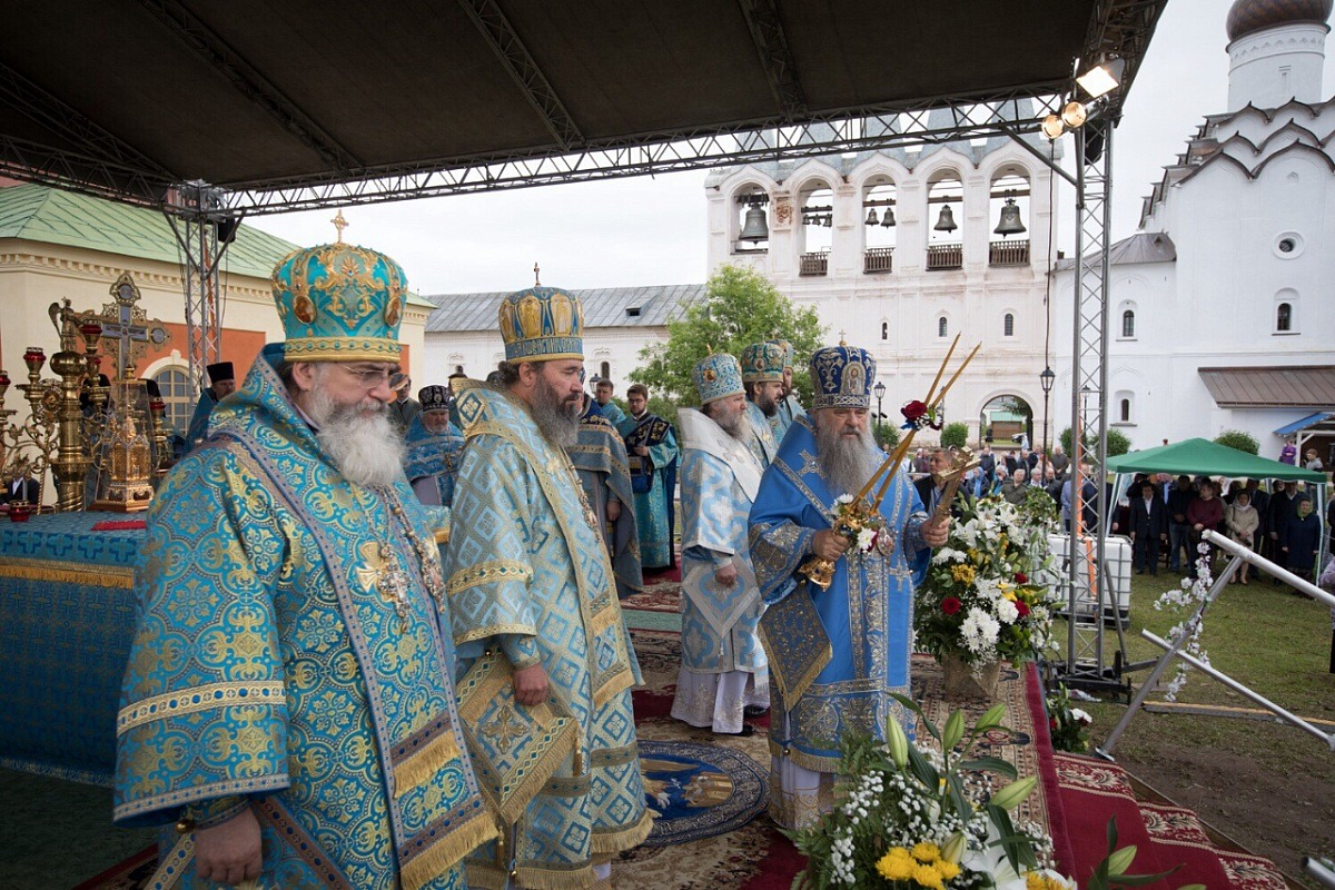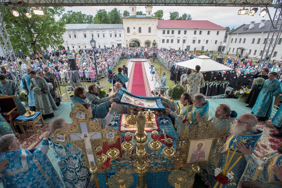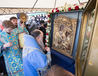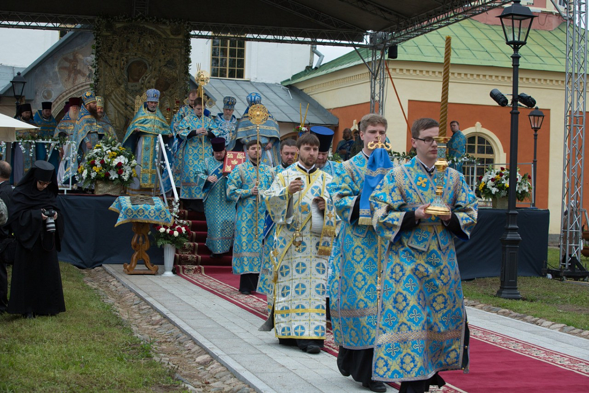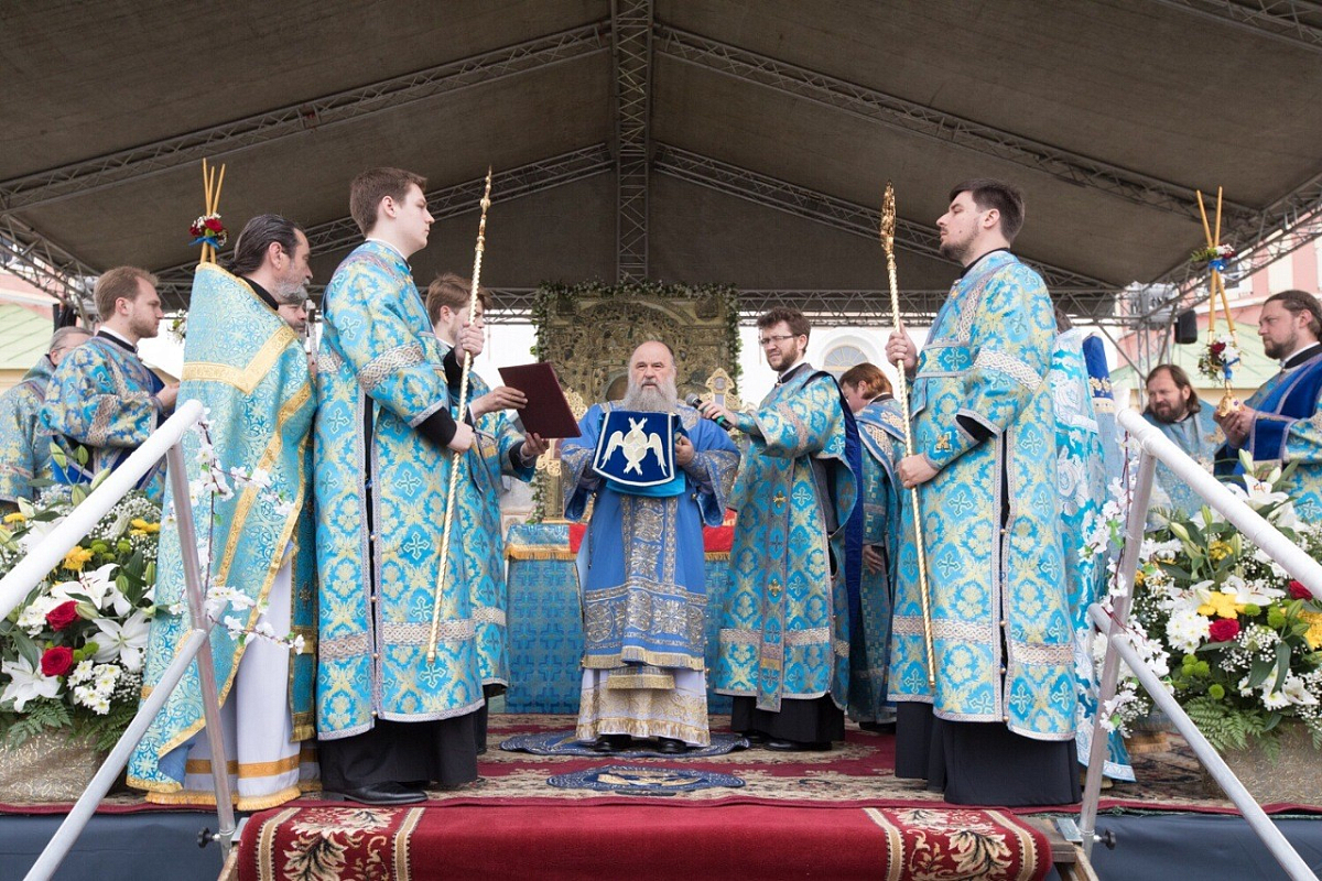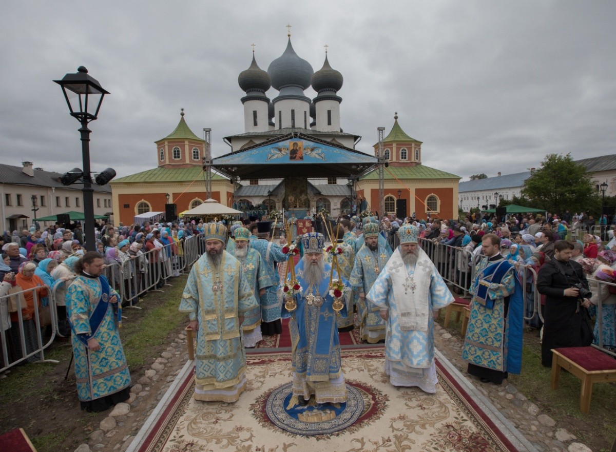 Чудотворная Тихвинская икона Божией Матери была вынесена из собора и установлена в палатке. Перед ней было совершено моление.