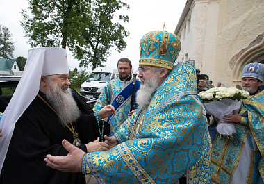 Митрополит Варсонофий подарил епископу Мстиславу крест и панагию, поблагодарив за организацию празднования.