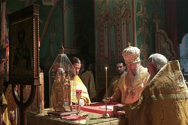 Накануне, 8 октября, Всенощное бдение с акафистом совершил митрополит Рязанский и Михайловский Вениамин.
