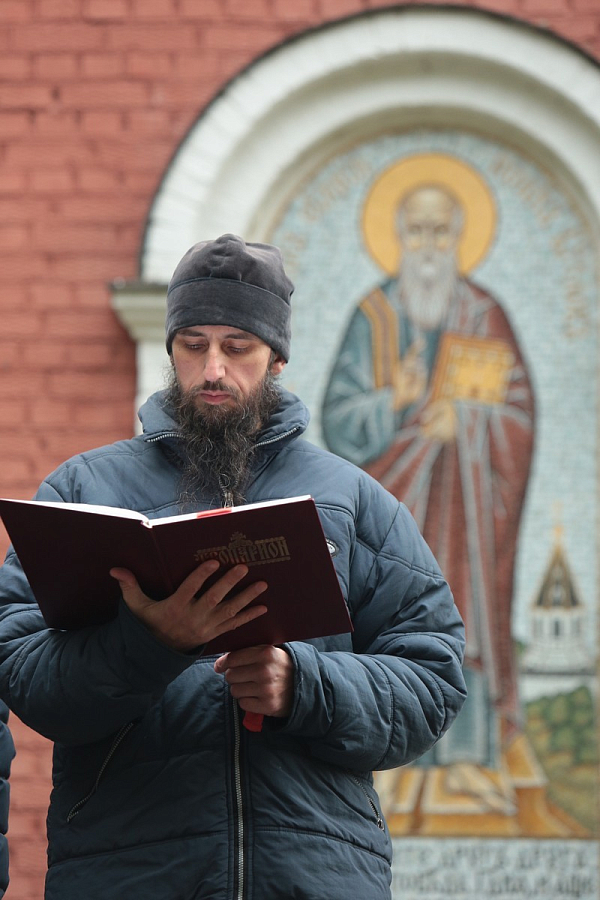 Проповедь перед Причастием произнес насельник Иоанно-Богословского мужского монастыря игумен Сергий (Гайдук).