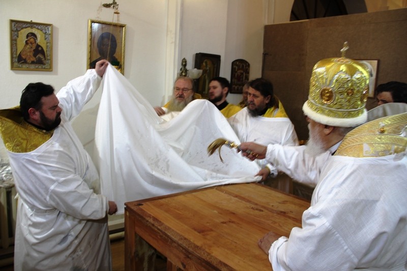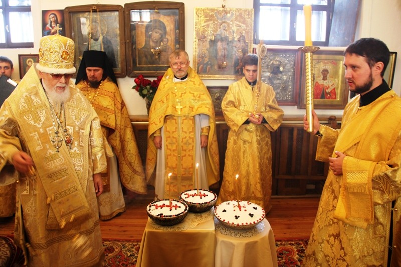 В завершение Литургии было совершено освящение колива, а также вознесена молитва святым Гурию и Варсонофию.