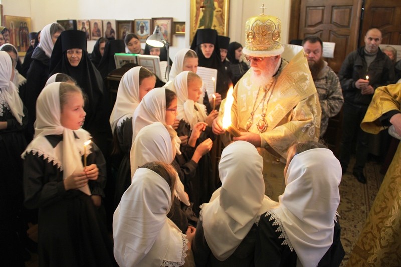 Накануне вечером Владыка совершил в обители всенощное бдение.