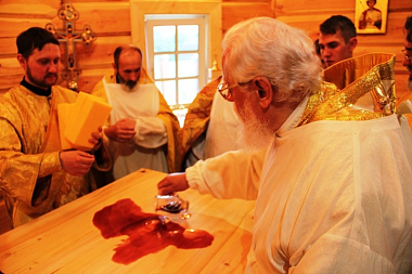 По окончании Литургии владыка Виктор поздравил верующих со знаменательным событием для селян – освящением новой церкви, а также обратился с проповедью, посвященной памяти святых Отцов Шестого Вселенского Собора, призывая собравшихся к сохранению чистоты Православия.
