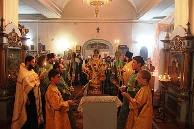 Его Высокопреосвященству сослужили настоятель храма протоиерей Вадим Капитонов, настоятель Казанской церкви с. Медного протоиерей Игорь Седов.