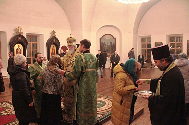 Высокопреосвященнейшему владыке сослужили благочинный Торжокского округа протоиерей Николай Алексеев, игумен монастыря иеромонах Арсений (Леонов), братия обители в священном сане, клирики Торжокского благочиния.
