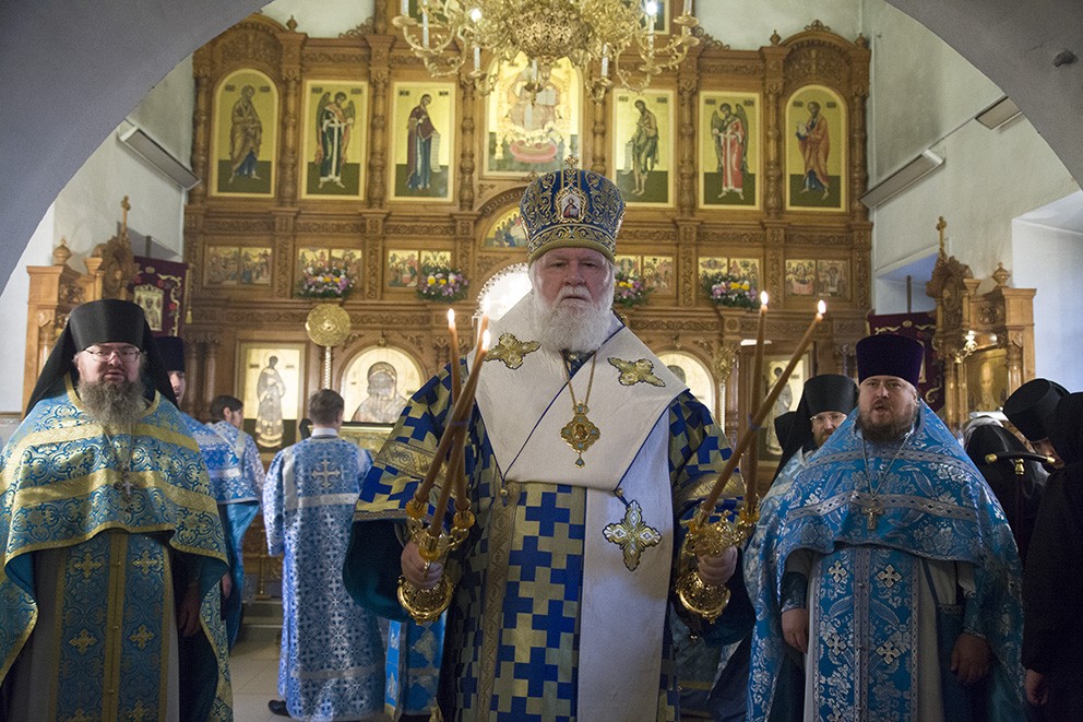 Его Высокопреосвященству сослужили секретарь епархии и настоятель Крестобогородского храма г. Ярославля иерей Александр Пчелкин, наместник Спасо-Яковлевского мужского монастыря игумен Августин (Неводничек), клирики епархии.