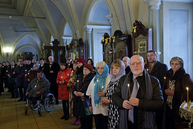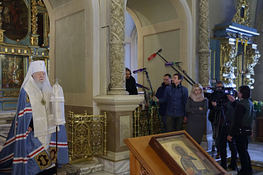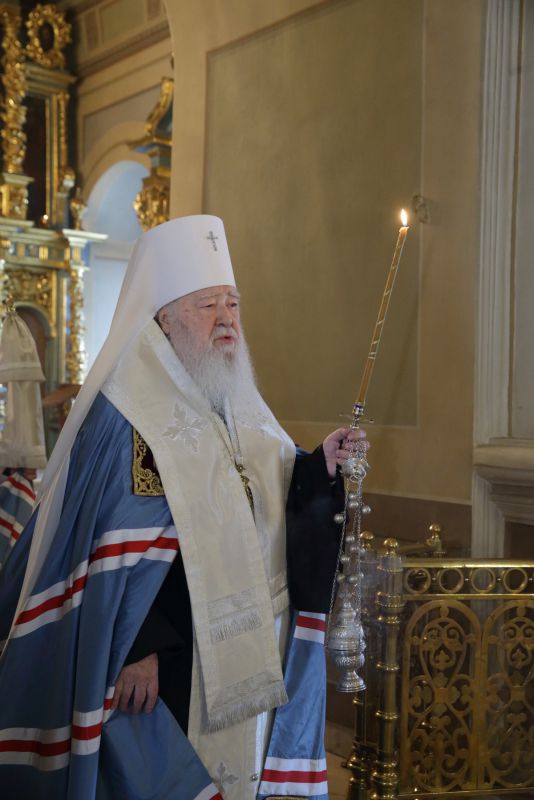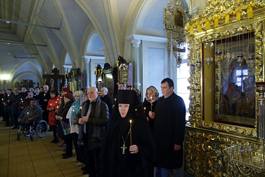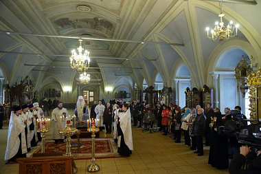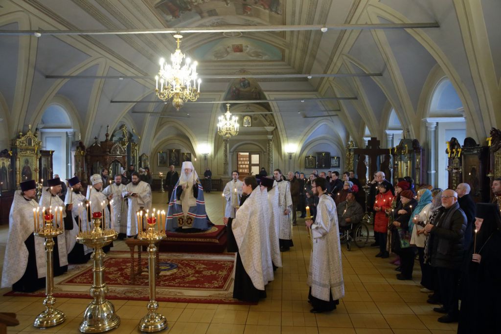 Его Высокопреосвященству сослужили секретарь Московского епархиального управления протоиерей Михаил Егоров и клирики обители.