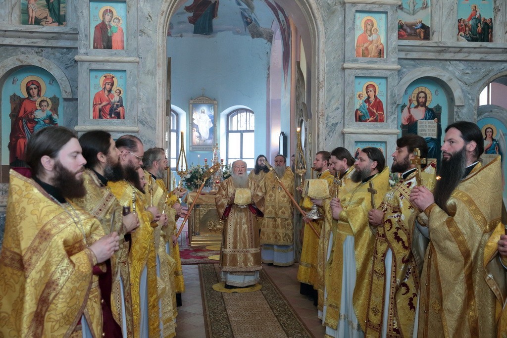 За Литургией Его Высокопреосвященству сослужили: благочинный монастырей Московской епархии епископ Серпуховской Роман; ректор Коломенской Духовной семинарии епископ Зарайский Константин; игумен Спасо-Преображенского Гуслицкого мужского монастыря Серафим (Голованов); игумен Богоявленского Старо-Голутвина мужского монастыря Варлаам (Горбунов); игумен Николо-Пешношского мужского монастыря Григорий (Клименко); игумен Николо-Берлюковской пустыни Евмений (Лагутин); игумен Вознесенской Давидовой пустыни Сергий (Куксов); благочинный церквей Орехово-Зуевского округа протоиерей Андрей Коробков; благочинный церквей Егорьевского округа игумен Никодим (Лунев), духовенство обители.